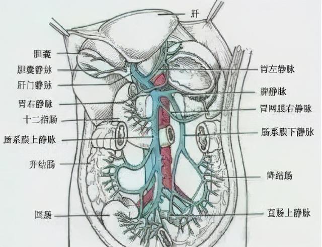 空、回肠静脉与动脉伴行,汇合成肠系膜上静脉,在同名动脉右侧上行,在胰腺颈部后方与脾静脉汇合成门静脉进入肝脏。