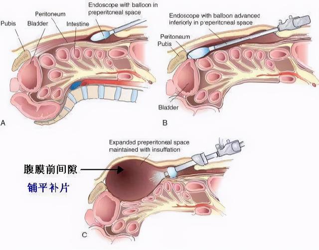 是通过三个操作孔进入腹腔后切开腹膜,在腹腔前间隙进行操作,放置补片后再将腹膜缝合起来。适合斜疝、直疝、股疝、双侧疝及一些复发疝。因为进入腹腔,所以视野清晰,容易找到解剖标志,优点是伤口小,恢复快,疤痕隐蔽,但是对于一些不能耐受全麻的患者不能进行。