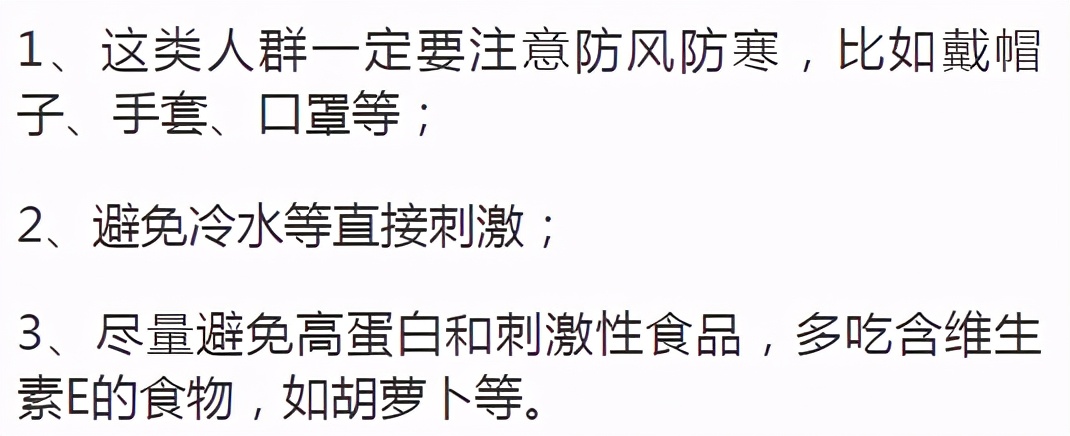 5、对于每年易复发者,可在夏季用冷水洗脸、洗脚等,提高耐寒能力。