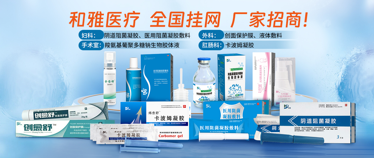 郑州和雅医疗器械有限公司位于河南省郑州市高新技术开发区,是一家集研发、生产、销售与服务为一体的高新技术企业,具有完善的科研部门和先进的生产设备。公司主营产品有:创面保护膜,液体敷料,医用阻菌凝胶敷料,阴道阻菌凝胶,卡波姆凝胶、羧氨基葡聚多糖钠生物胶体液等。