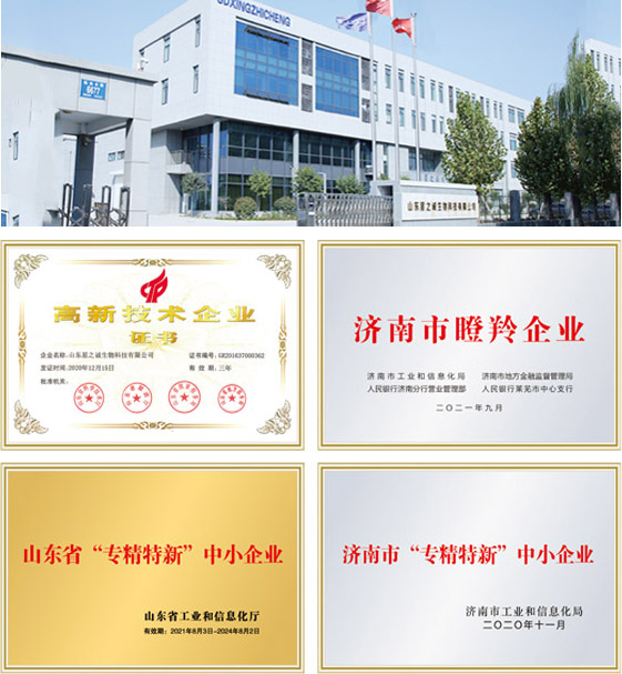 星之诚现拥有先进的生物实验室和标准化净化厂房,建立了完善的质量体系,先后通过ISO9001、ISO13485、欧盟CE、美国FDA等专业医疗器械质量体系认证。截至目前,星之诚荣获国家发明专利、实用新型专利、软件著作权等数百项,以及“高新技术企业”、“山东省瞪羚企业”、济南市“瞪羚企业”、山东省“专精特新”企业、“创新型中小企业”、“济南市个体私营企业党建工作创新试点单位”、“2017山东十大成长力品牌”、“东西协作扶贫慈善企业”、高新区“五星级党组织”、“先进基层党组织”、“党建工作指导站”、“党建工作示范点”等多项荣誉称号。