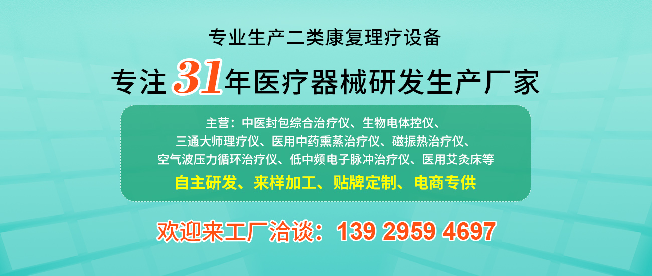公司不断创新,按ISO13485标准建立健全质量管理体系,对产品严把质量关。 新开发出多种经络通治疗仪、磁振热治疗仪、空气波压力循环治疗仪、中药熏蒸治疗仪、冲击波治疗仪等康复理疗设备,同时引进韩国干涉波治疗仪、高频热疗激光治疗仪等新技术产品,产品医疗证照手续齐全,是客户发展事业、实现自我的理想不二选择。