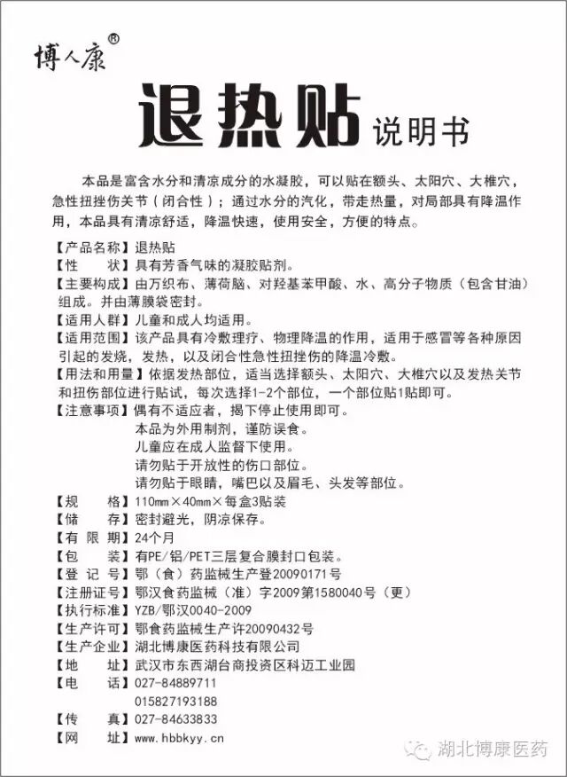 博人康退热贴产品说明:
