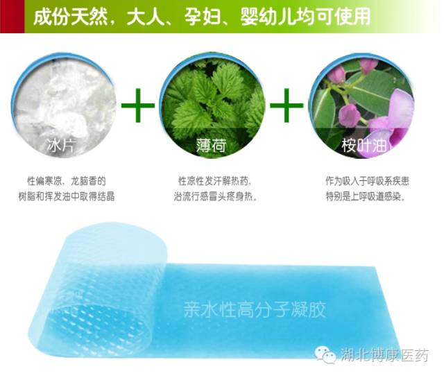 【功能】通常作为退热剂的辅佐退热方法,贴在额头或患处,利用水汽化时带走热量的机理,对人体局部实行降温退热